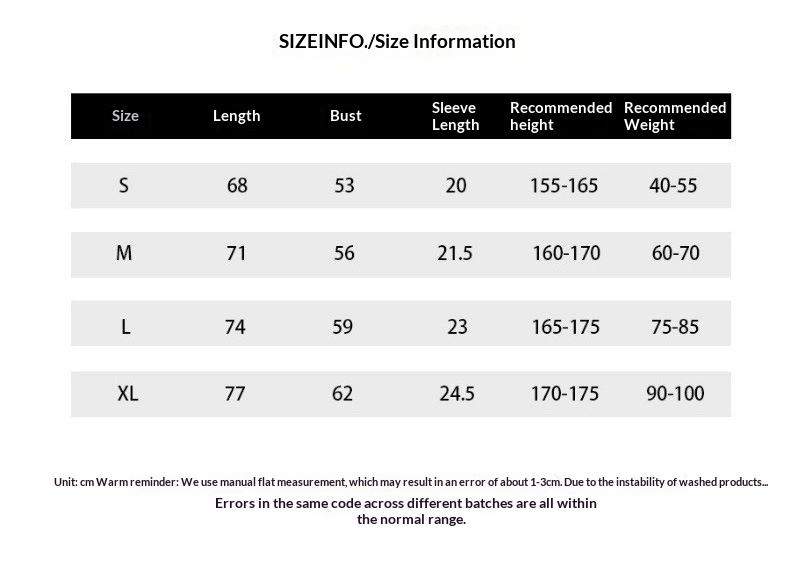 1. Asian sizes are 1 to 2 sizes smaller than European and American people. Choose the larger size if your size between two sizes. Please allow 2-3cm differences due to manual measurement. 2. Please check the size chart carefully before you buy the item, if you don't know how to choose size, please contact our customer service. 3.As you know, the different computers display colors differently, the color of the actual item may vary slightly from the following images.